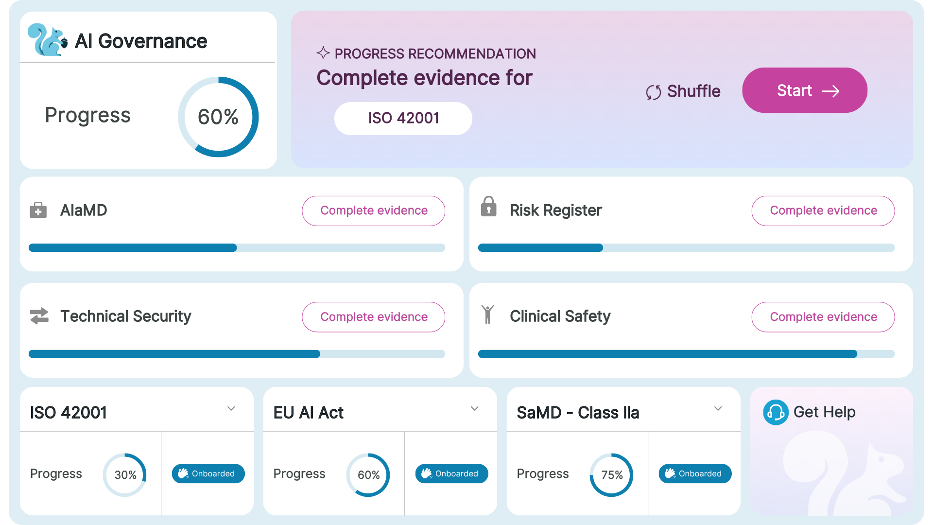 Squirrel™ automates reminders, evidence collection, and documentation while your AI Copilot guides you through each requirement.